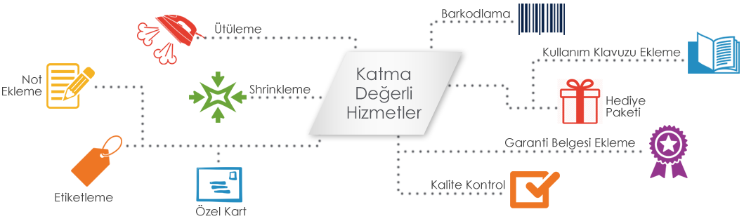 - Katma Değerli Hizmetler (etiketleme, alarmlama, boncuklama)